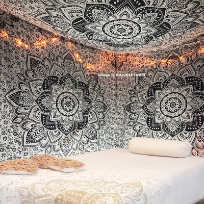 raajsee Tapestry Mandala Black & White Indian cotton wall hanging Throw/Hippie Tapestry Black/Bohemian Bedding Elephant dorm decor Tapestries/Boho Queen Bedspread 210x220cms/A gift